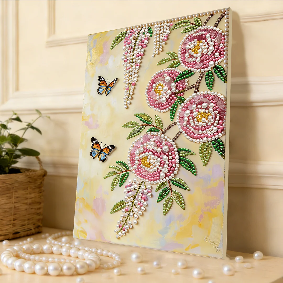 2.Luxurious 3D Pearl Texture: Adorned with pearl dot painting, the surface reveals a captivating 3D shine. The studded pearls and gems bring elevated artistry and vibrant texture, making your piece glimmer beautifully under light for an upscale effect.