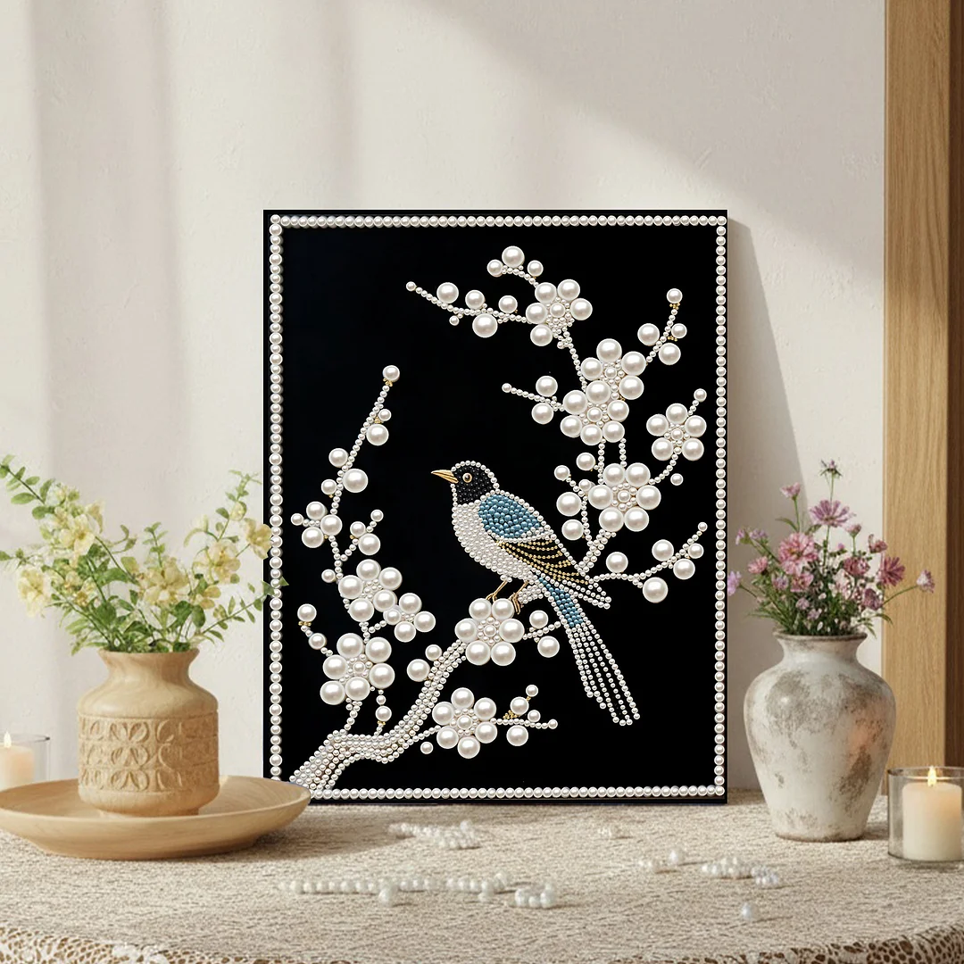 DIY Pearl Painting Magpie with Frame for Home Wall Decor(30x40cm)