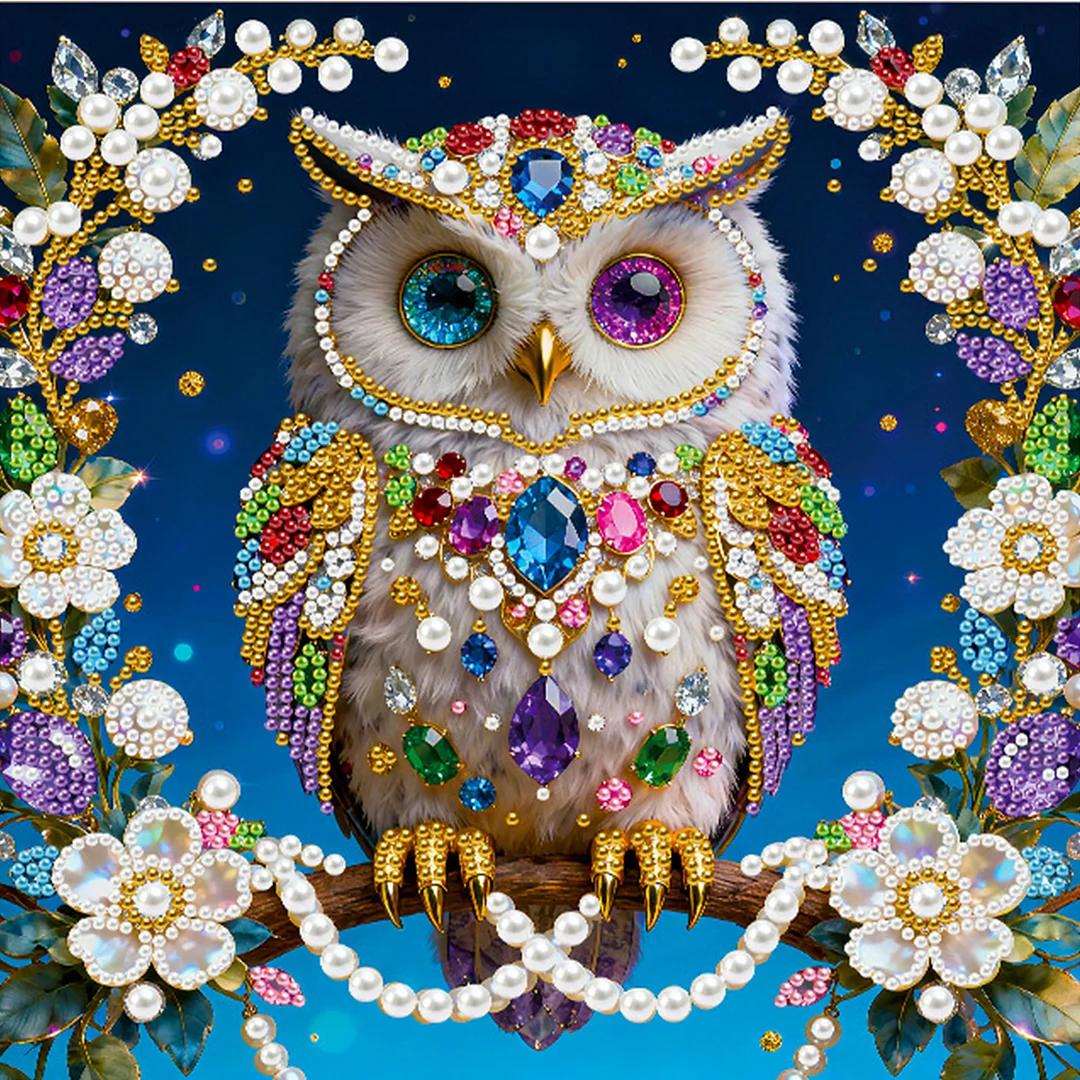 DIY Pearl Painting Owl for Home Decor with Frame(25x25cm)