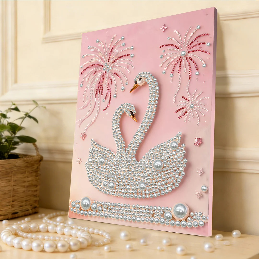 DIY Pearl Painting Swan for Home Wall Decor with Frame(40*30cm)