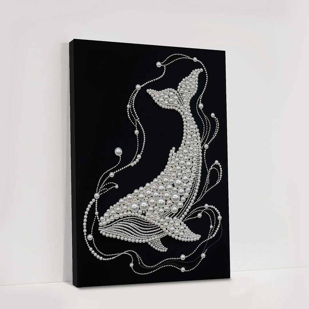 DIY Pearl Painting White Whale for Home Wall Decor with Frame(40*30cm)