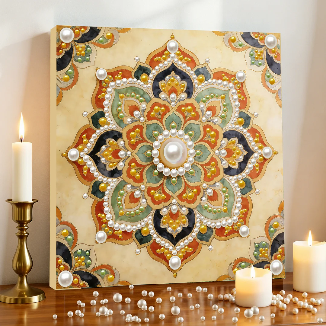 DIY Pearl Painting Yellow Mandala for Home Decor with Frame(30*30cm)