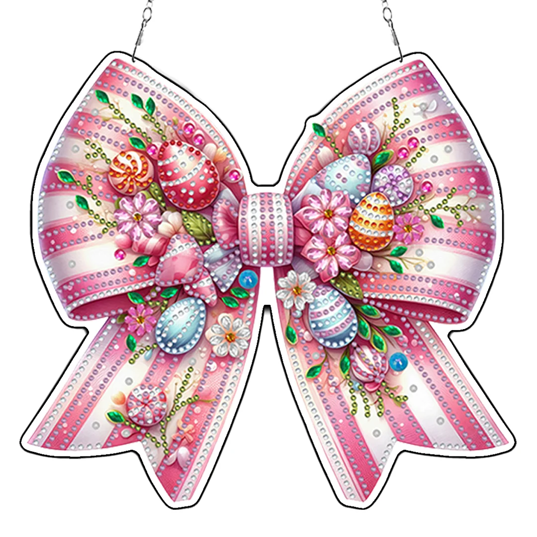 Easter Bow 5D DIY Diamond Painting Dots Pendant Rhinestone Diamond Art Pendants Diamond Painting Hanging Pendant for Wall Window