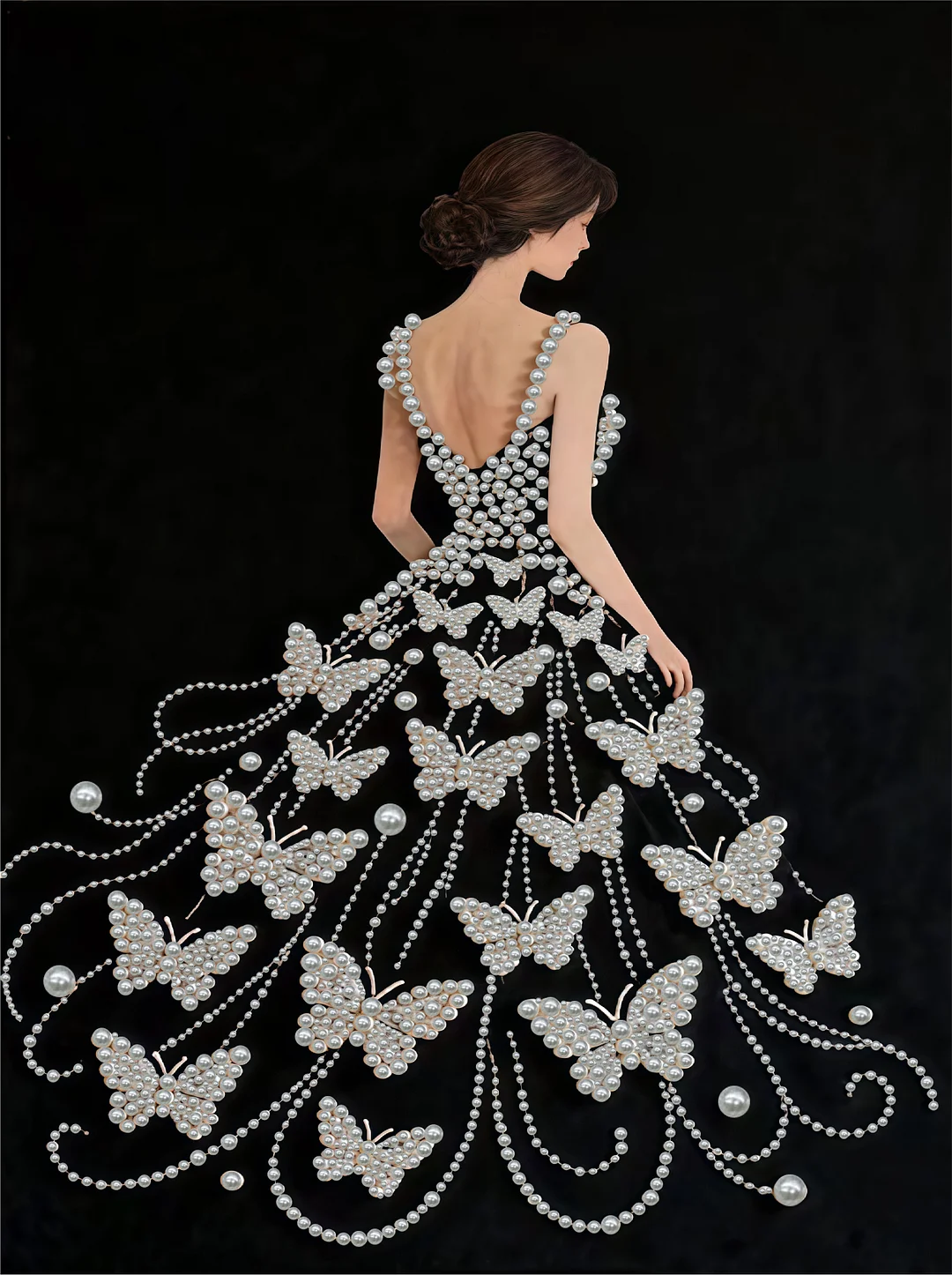 Diamond Painting-DIY Special Shaped Drill Pearl Painting Girl in a Butterfly Skirt(35x45cm)